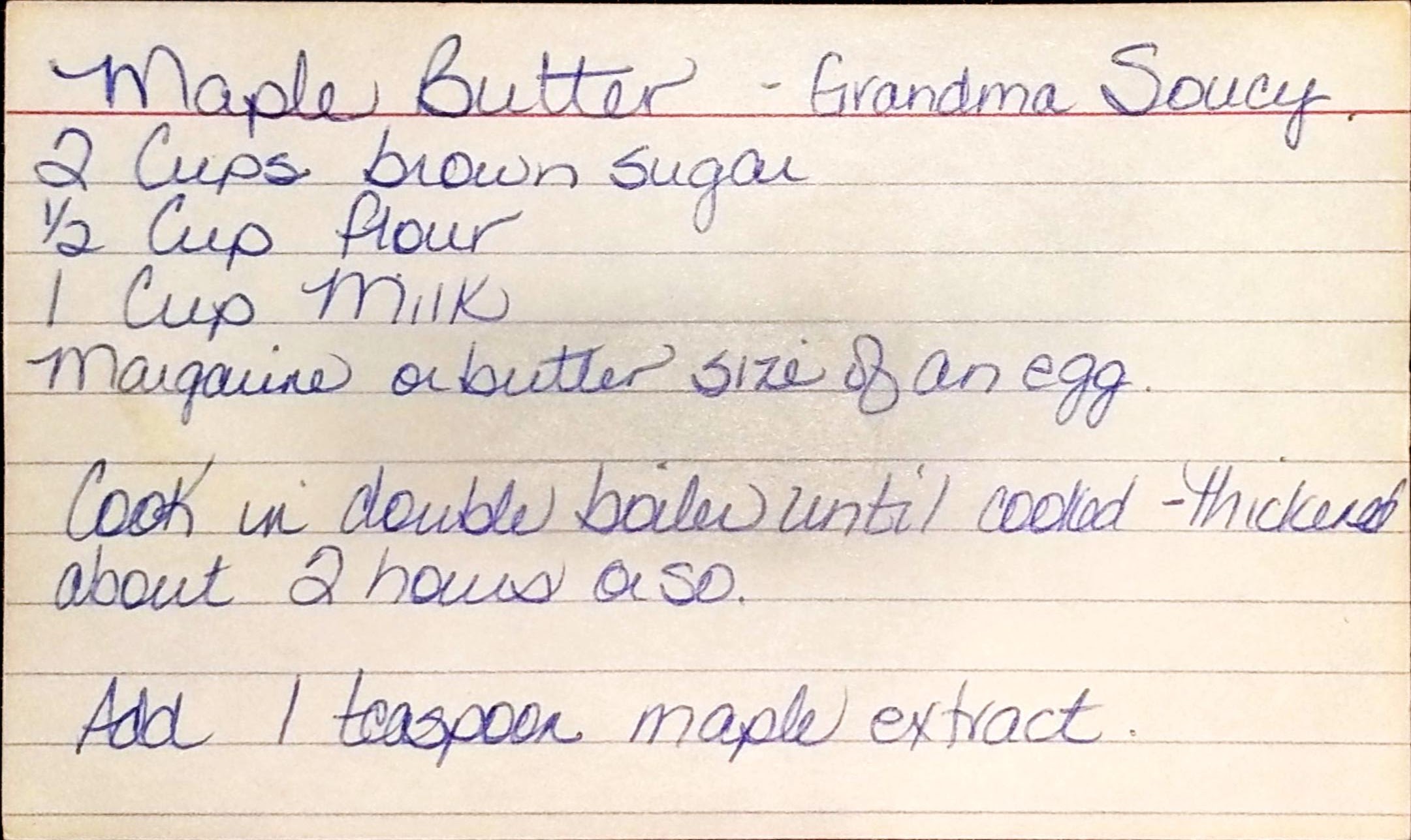 - Cook all but maple extract in a double-boiler until cooked and thickened, about 2 hours