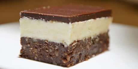 - For the middle layer, cream together ½ cup butter, heavy cream and custard powder until light and fluffy. Mix in the confectioners' sugar until smooth. Spread over the bottom layer in the pan. Chill to set.