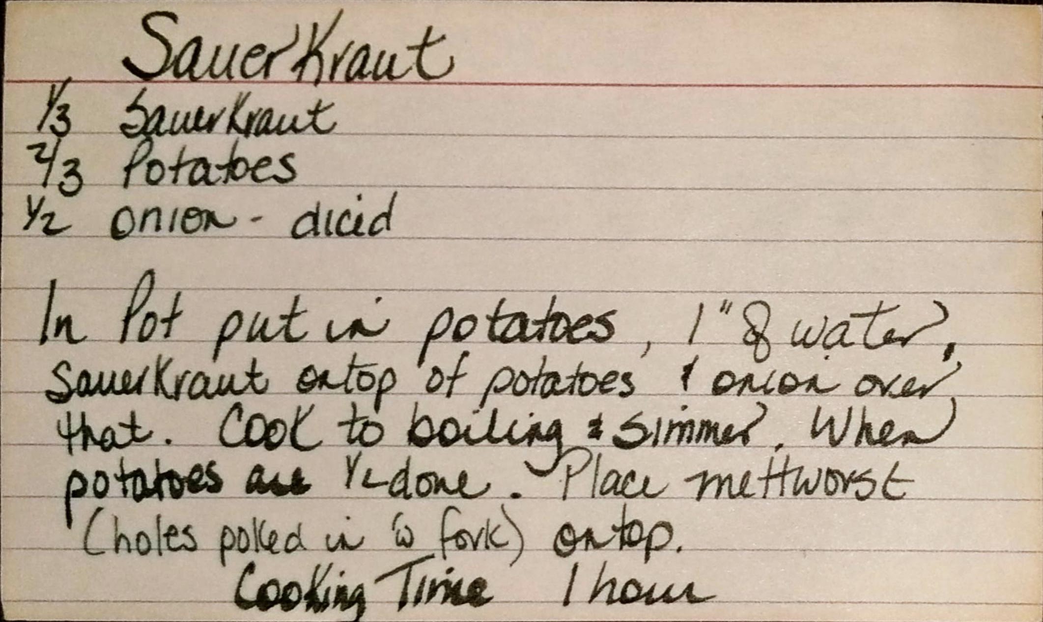 Handed down for generations. Cooking time is about an hour.Ingredients